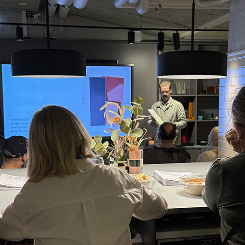 17-19 september anordnade Mosa ett lanseringsevent för nya Global Collection & Colors i vårt showroom. Tre luncher där Björn Lekander från Mosa visade en film där Mosas designer berättade om tanken bakom de förnyade kollektionerna vilket var mycket inspirerande. Sen förklarade Björn konceptet med storlekar, kulörer och ytor i serierna och sen var det dags för workshop där alla kunde känna och klämma på plattorna och se en tillfällig utställning med serierna.
