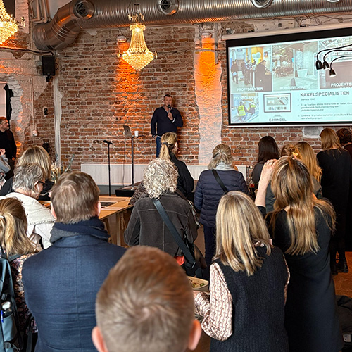 Stort intresse vid vårt lunchevent 19 mars då vi lanserade engelska Alusid i Sverige. Cirka 60 arkitekter, fastighetsägare och hållbarhetsansvariga var på plats i Skyddsrummet på Söder Mälarstrand. Vi visade Alusids sortiment av kakel och klinker och VD och en av grundarna av Alusid - Alsdair Bremner berättade om företaget och dess vision kring hållbarhet och låg klimatpåverkan vid tillverkning av kakel och klinker. Inspirerande och en hoppfull känsla för vårt material i framtiden.