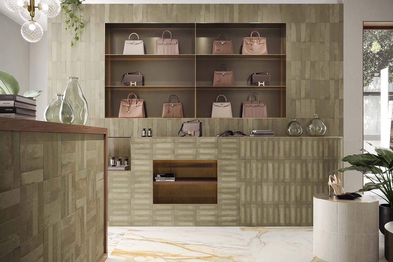 Storlek 6x24 cm, 6 varma kulörer. För sättning på vägg eller golv. Serien innehåller även en typ av 3D dekor – Fornace Formella som återger tegelstenarnas långsida där man i London traditionellt brukade trycka tillverkarens logotyp. Med dekoren kan du skapa fondväggar, klä in pelare eller bord och skapa andra dekorativa detaljer.
