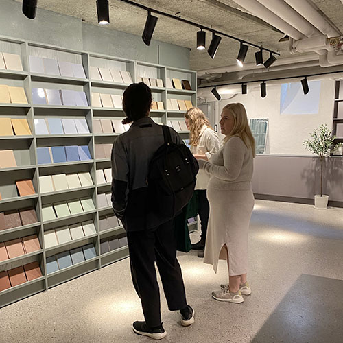 Har du inte möjlighet att besöka vårt showroom så kan du se projektsortimentet och beställa prover här på hemsidan. Du kan också boka ett digitalt möte med oss där vi kan gå igenom vad du söker. Vi hjälper arkitekter och inredare på distans med den senaste digitala tekniken där en avancerad kamera kan visa plattor med oerhört hög skärpa precis som om du vore på plats. Vi kan på det här sättet hjälpa till med urval av plattor till projekt och skapa moodboards som du sen får digitalt skickade till dig tillsammans med prover.