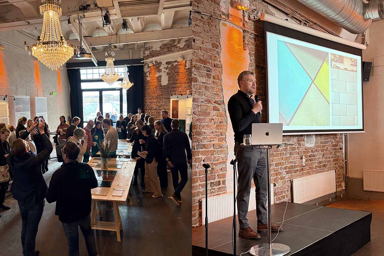 Stort intresse vid vårt lunchevent 19 mars då vi lanserade engelska Alusid i Sverige. Cirka 60 arkitekter, fastighetsägare och hållbarhetsansvariga var på plats i Skyddsrummet på Söder Mälarstrand. Vi visade Alusids sortiment av kakel och klinker och VD och en av grundarna av Alusid - Alsdair Bremner berättade om företaget och dess vision kring hållbarhet och låg klimatpåverkan vid tillverkning av kakel och klinker. Inspirerande och en hoppfull känsla för vårt material i framtiden.