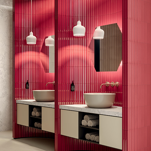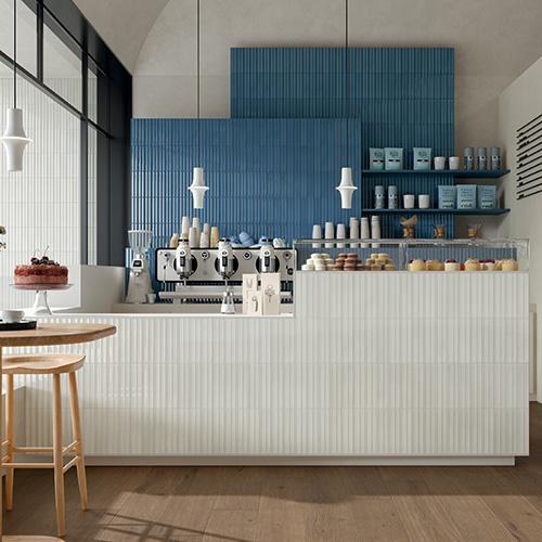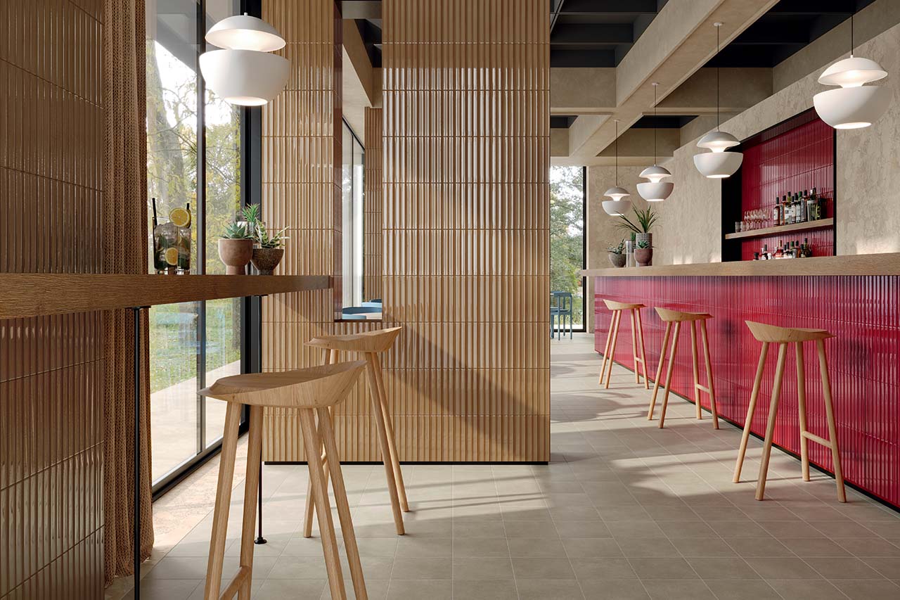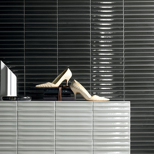 Minature Rima är en granitkeramik i både klara och neutrala kulörer. Plattan har ett 3D utseende med en kant som löper över ytan och som reflekterar ljuset på ett vackert sätt. Ytan är glossy och formatet är avlångt. Sätt på en disk, som fondvägg eller på en fasad.