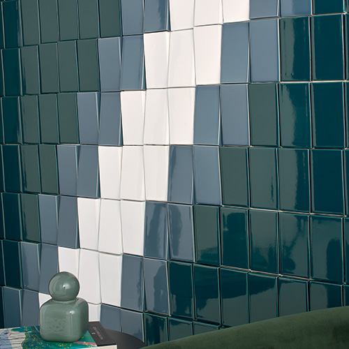 Volumi är en handgjord serie med bland annat keramiska tredimensionella byggklossar i djupa kulörer. De kan användas för att skapa fondväggar, diskar och andra dekorativa väggytor. Finns i två olika former med tredimensionell effekt och en enfärgad basplatta.