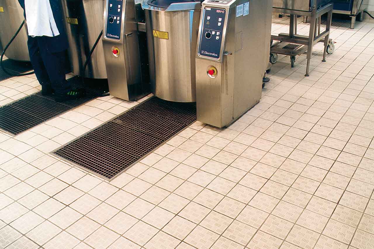 Industri är Kakelspecialistens eget framtagna serie för plattor i storkök och på industrigolv. Industri är en granitkeramik som finns i 1 kulör, 2 olika halkdämpningsytor och till serien finns också 2 olika avslut och hålkäl. När det gäller storköksplattor är det viktigt att storleken inte överstiger 20x20 cm, att plattan är tätsintrad med avseende på vattenapsorbtion och att en högre halkdämpningsklass används i vissa utrymmen. R13 den högre halkdämpningsklassen används i arbetsområden med återkommande risk för spill samt i områden med lutning och ringa vattenbegjutning och områden med hög belastning.